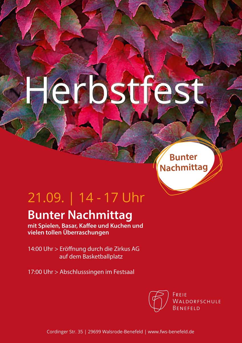 Der Herbst ist da und mit ihm unendlich viele Farben in der Natur. In dieser Zeit ist es an der Freien Waldorfschule Benefeld  schon eine kleine Selbstverständlichkeit für Schülerinnen und Schüler, für Eltern, Mitarbeitende und Ehemalige, dass das Herbstfest stattfindet.   Ein farbenfrohes Fe…